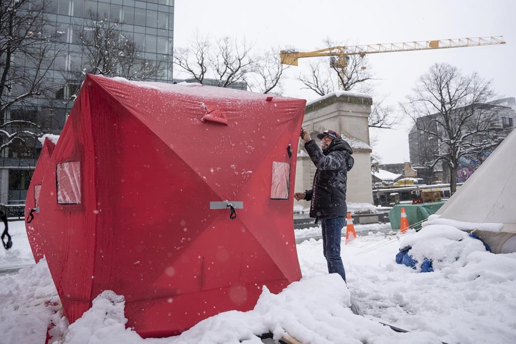 HALIFAX — Des groupes de bénévoles ont acheté des abris de pêche sur la glace pour aider les personnes en situation d'itinérance à affronter le temps froid et humide à Halifax, qui a reçu sa première chute de neige importante de la saison dans la nuit de dimanche.